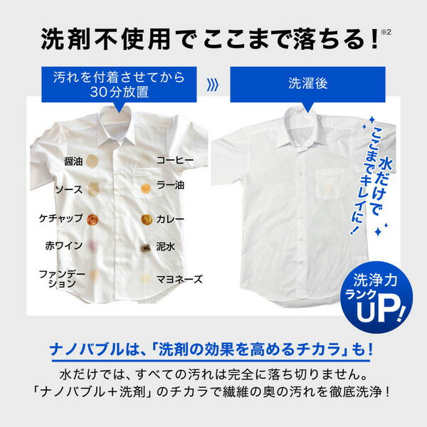 さらに、ナノバブルを使うことで洗剤の量を減らせたり、秋冬の低温でも洗浄力が保てるため、環境にも優しいのがポイント。節水や節電にもつながるので、エコな生活を目指す人にはぴったりです。